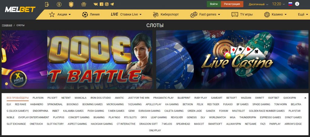 Для тех, кому надоели ставки в БК Мелбет на зеркале есть возможность зайти и сделать ставки казино. Игровые слоты и автоматы доступны для всех, а главное играть можно как на денежные средства, так и без них.